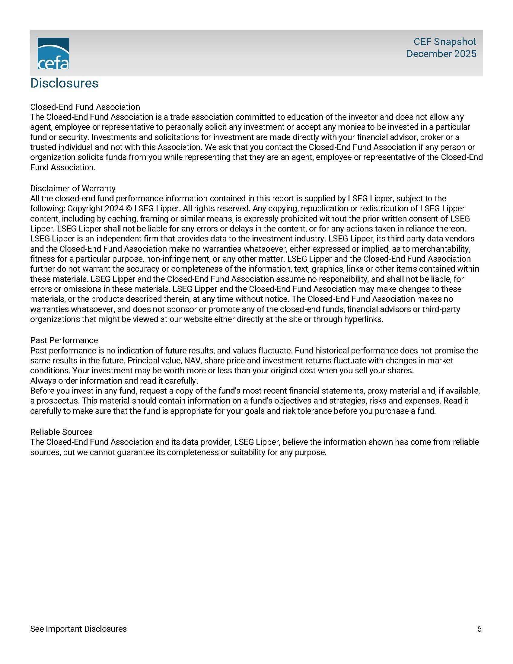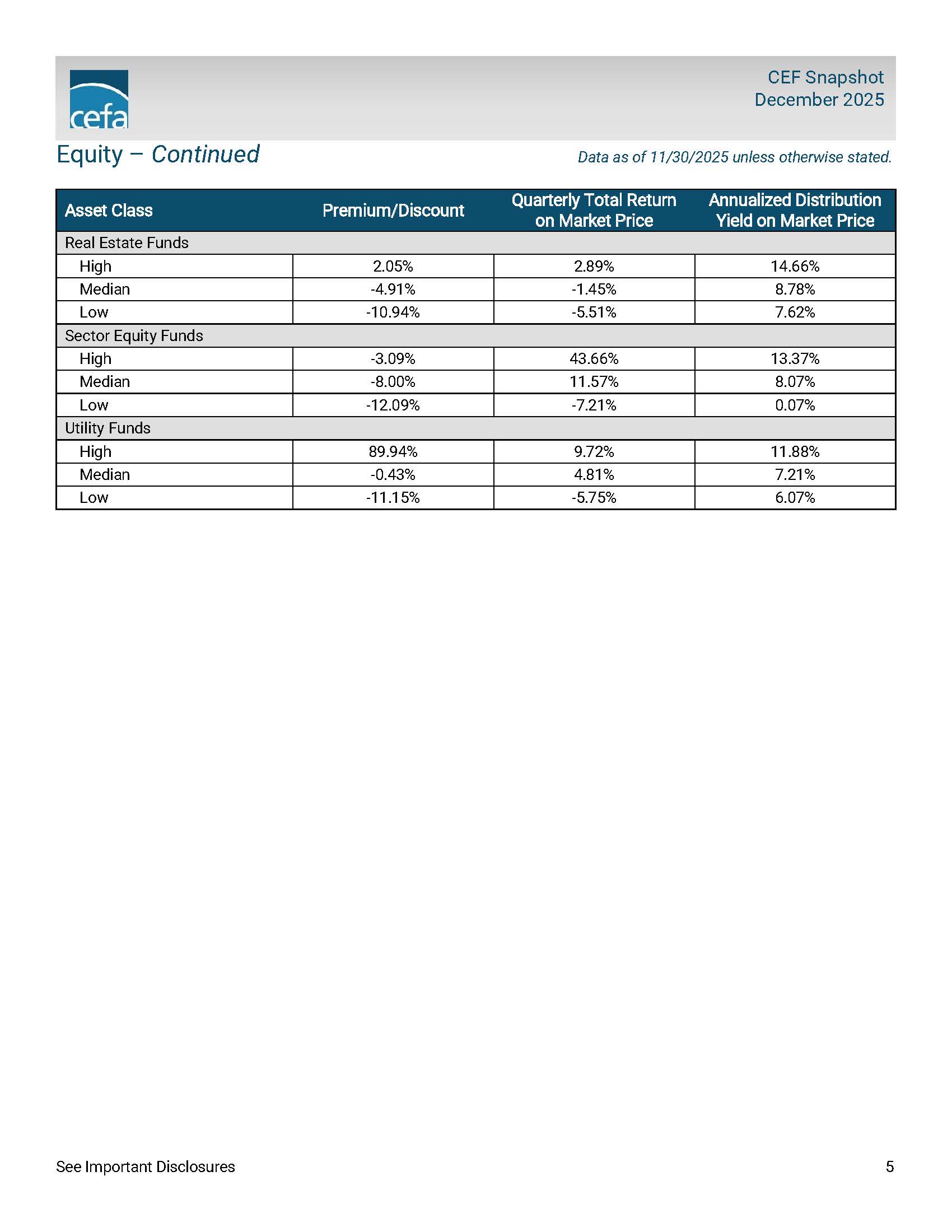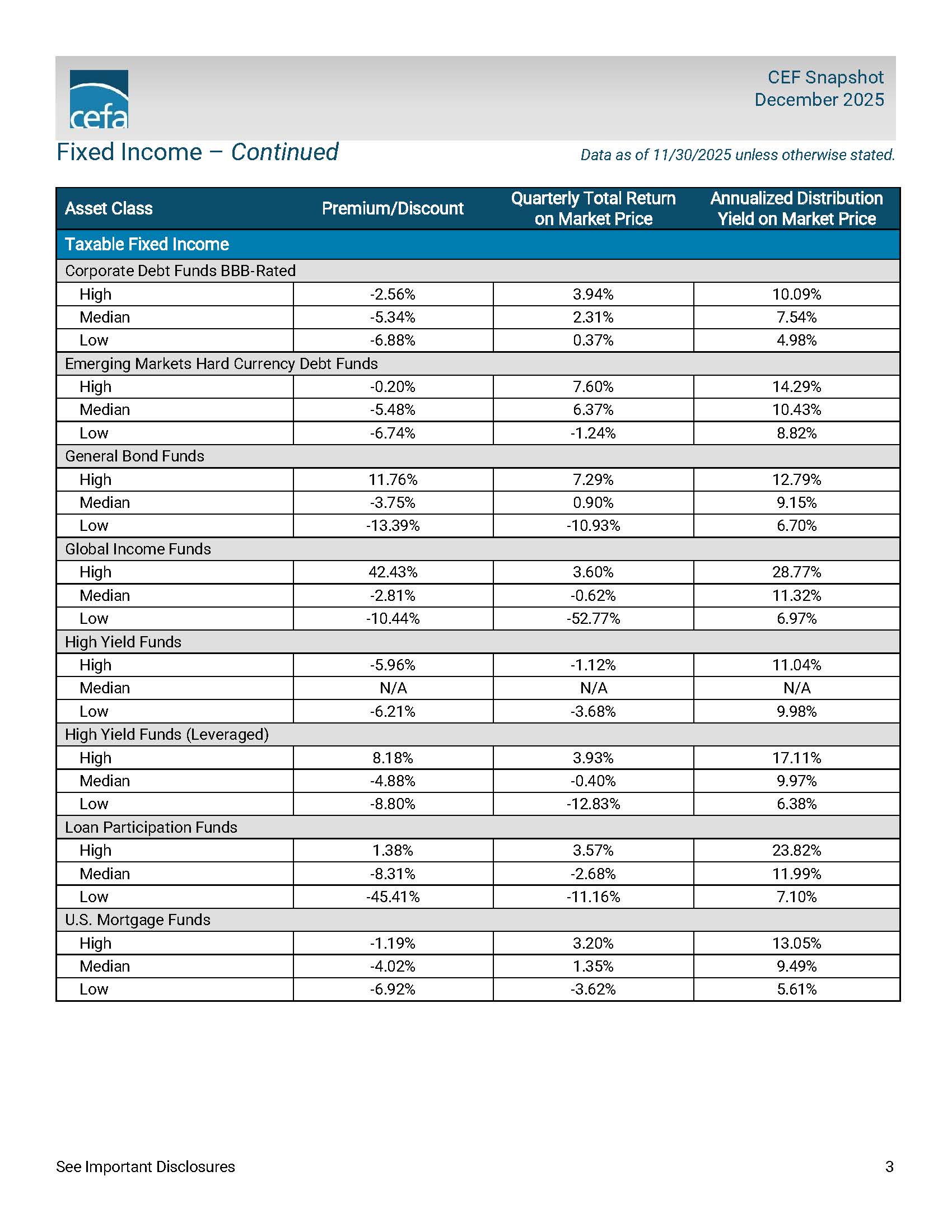 CEF Snapshot: December 2025