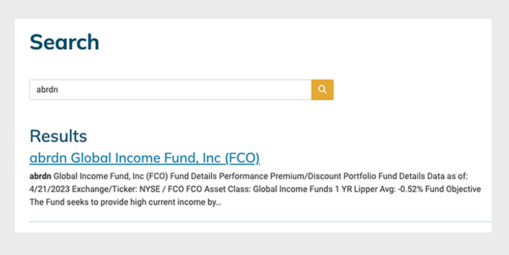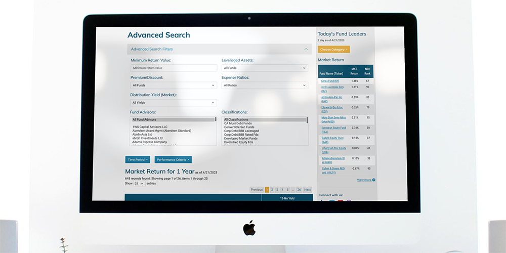 A streamlined design with new and enhanced features makes it easier for investors, financial advisors, and other industry professionals to gain closed-end fund data, insights, and more. Explore the features below: